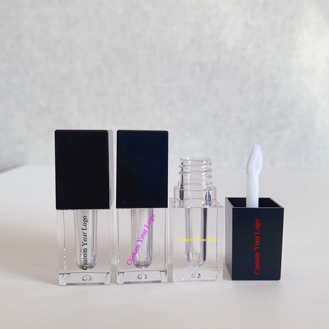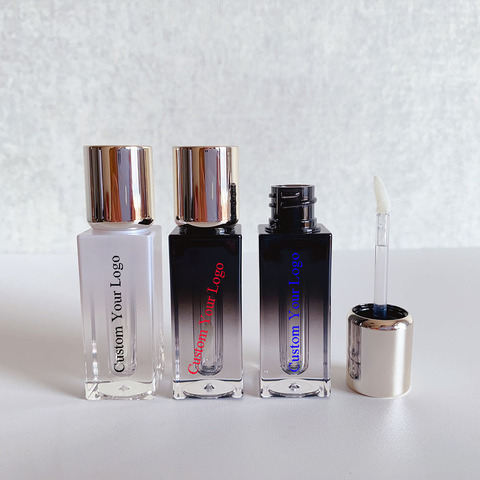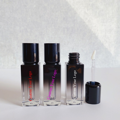 LZ 팩 핫 세일 3.5ml UV 광택 그라데이션 블랙 독특한 립글로스 튜브 스퀘어 사용자 정의 로고 립글로스 컨테이너 튜브