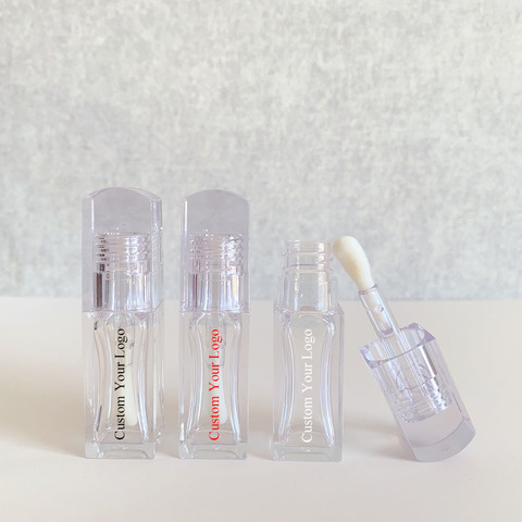 LZ 팩 인기있는 스퀘어 8ml PETG 투명 립 글로스 튜브 맞춤형 개인 라벨 큰 브러시 립 틴트 용기