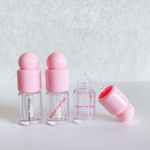 LZ 팩 볼 탑 아기 핑크 라운드 3.5ml 립 틴트 병 사용자 정의 개인 라벨 귀여운 미니 새로운 빈 립글로스 튜브 지팡이