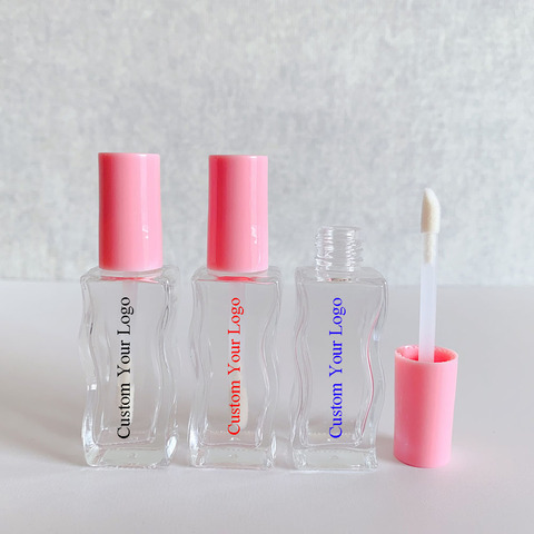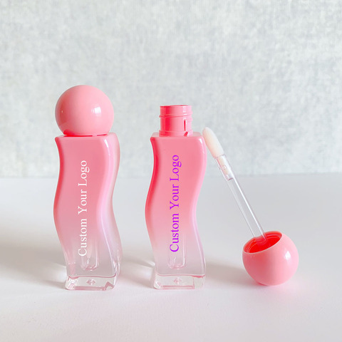 LZ 팩 프로모션 가격 10ml 핑크 탑 웨이브 립글로스 용기 사용자 정의 로고 독특한 립글로스 튜브 지팡이